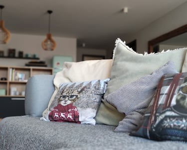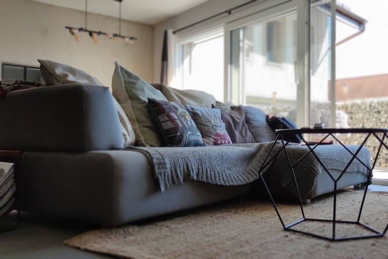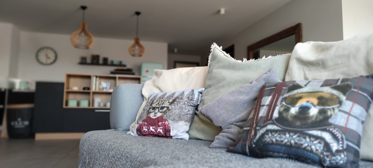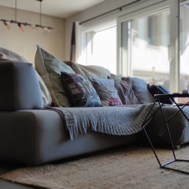 Le séjour, généreux et lumineux, a été aménagé à proximité des baies vitrées afin de profiter pleinement de la lumière et des vues extérieures. Bien que spacieux, l’espace conserve une atmosphère cosy et accueillante, grâce à l’utilisation de matériaux doux, de teintes chaleureuses et d’un mobilier soigneusement sélectionné.
