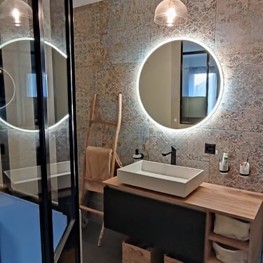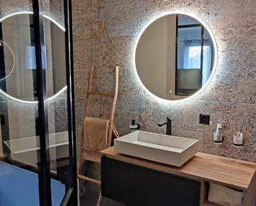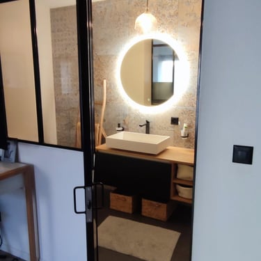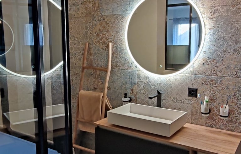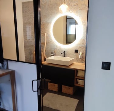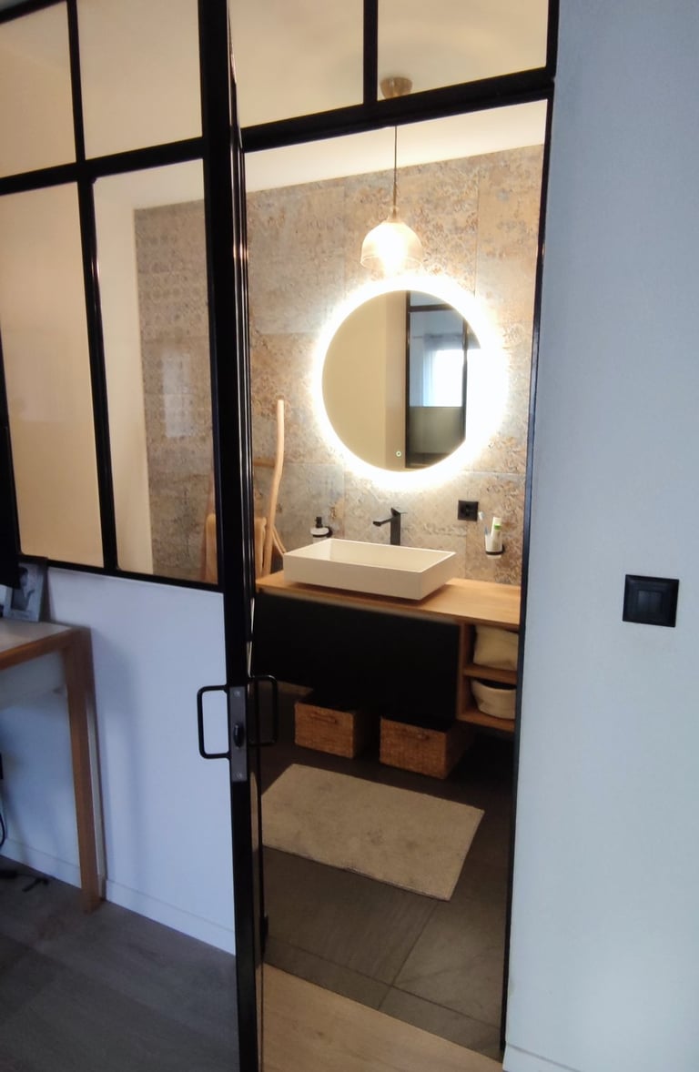 Les photos finales révèlent une salle de bain entièrement transformée, où chaque détail a été pensé : du choix des revêtements à l’intégration des équipements, en passant par le mobilier sur mesure.