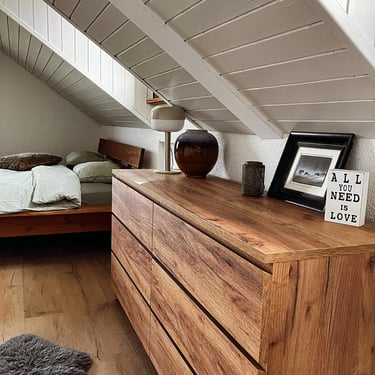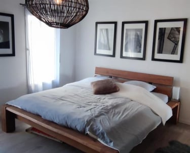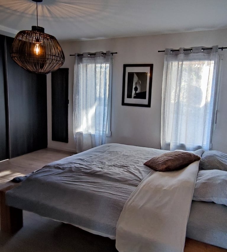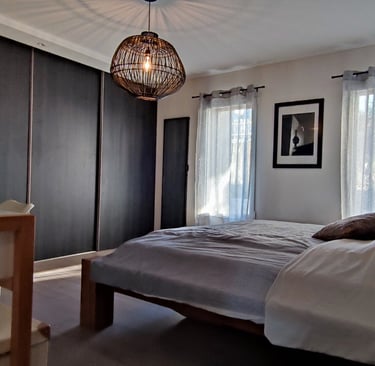 Les photos finales révèlent un espace parental entièrement transformé, pensé comme un refuge intime et confortable. Ce projet illustre mon approche de l’aménagement intérieur : repenser l’existant, ouvrir les espaces lorsque cela fait sens, et concevoir des lieux sur mesure, en parfaite adéquation avec le mode de vie de leurs occupants.