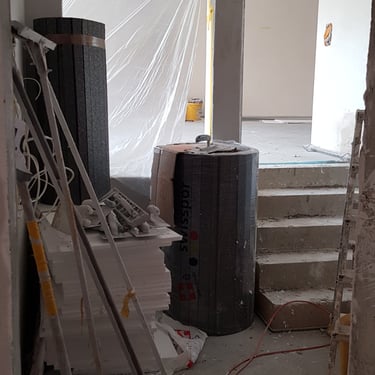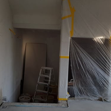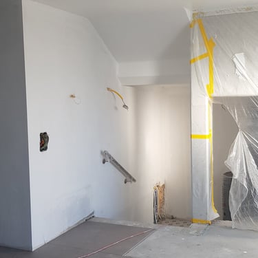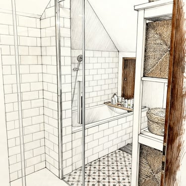 Au fil de l’avancement du chantier, les matières, les teintes et les détails prennent forme. La chambre parentale se transforme en un cocon calme et chaleureux, tandis que la salle de bain s’ouvre sur une ambiance contemporaine et raffinée, avec une douche aux lignes épurées et des rangements intégrés.