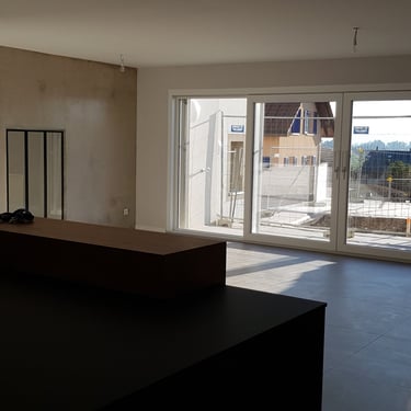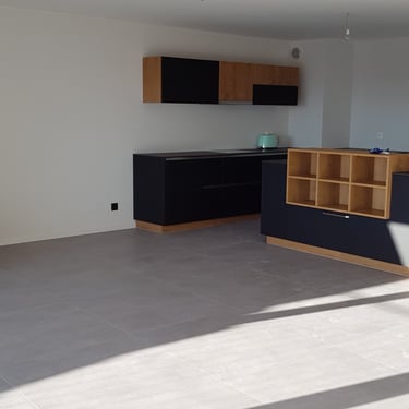 Pour cet appartement neuf situé dans la région lausannoise, l’espace de vie a été entièrement conçu à partir des plans d’architecte, avec une attention particulière portée à la cuisine et au séjour. L’enjeu du projet était de créer un lieu ouvert, contemporain et convivial, tout en apportant une ambiance douce et chaleureuse dès la conception.